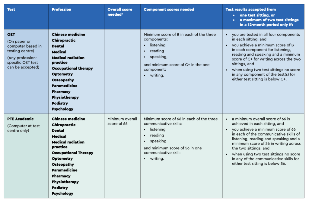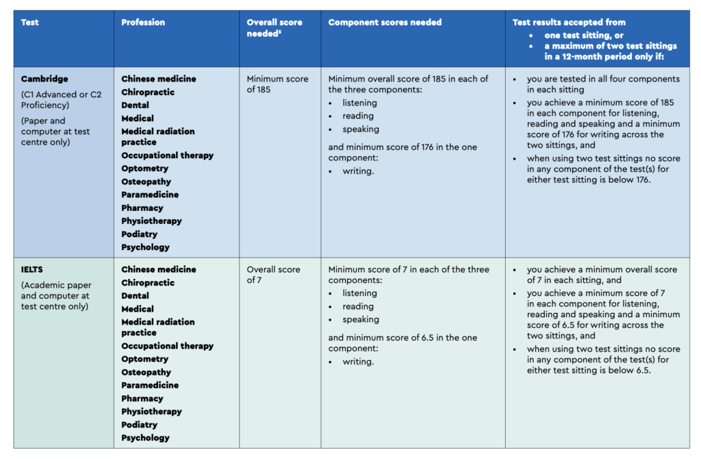 ※英語試験および OPRA(旧KAPS)試験に関する要件や有効期間は、制度変更や運用の見直しが行われる可能性があります。最新かつ正確な情報については、必ずAHPRAや公式機関の発表をご確認ください。